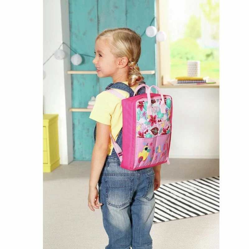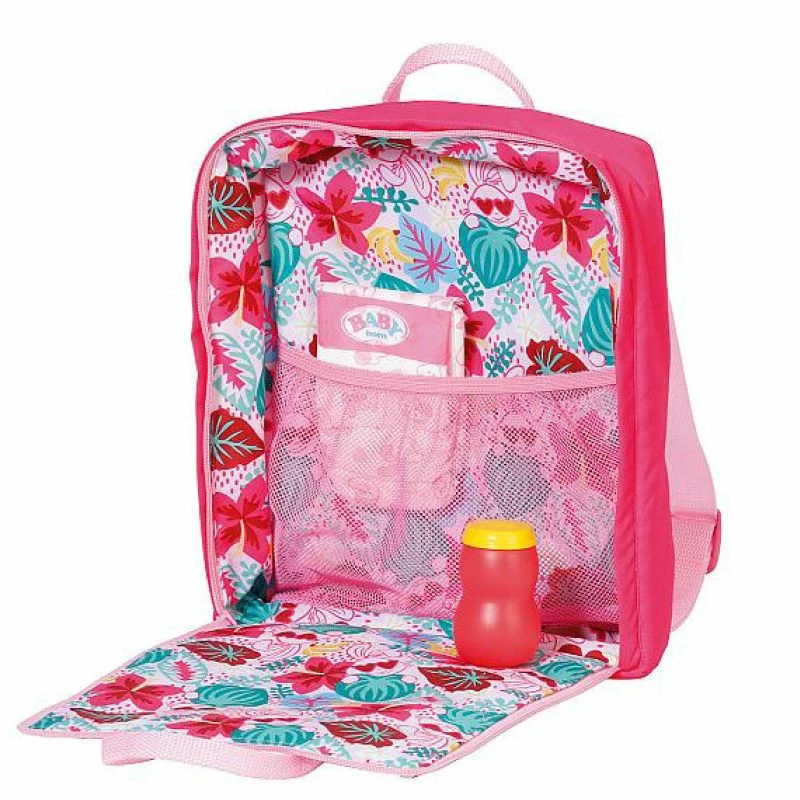 Denne søte Baby Born ryggsekken kommer med ett innebygd stelleteppe slik at du alltid er forberedt om du trenger å skifte bleie på Baby Born dukken. Alt du trenger å gjøre er å åpne sekken helt og legge ned fremsiden av ryggsekken. Sekken kommer med en stor lomme på innsiden til for eksempel ekstra bleier, og to praktiske lommer på utsiden av ryggsekken.