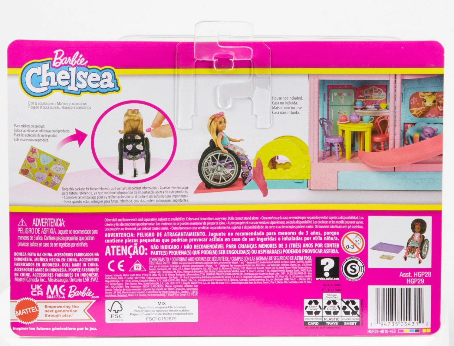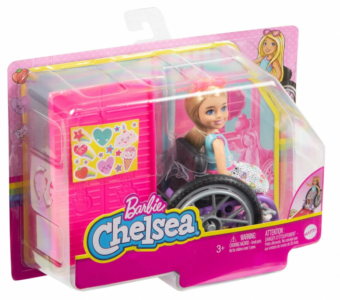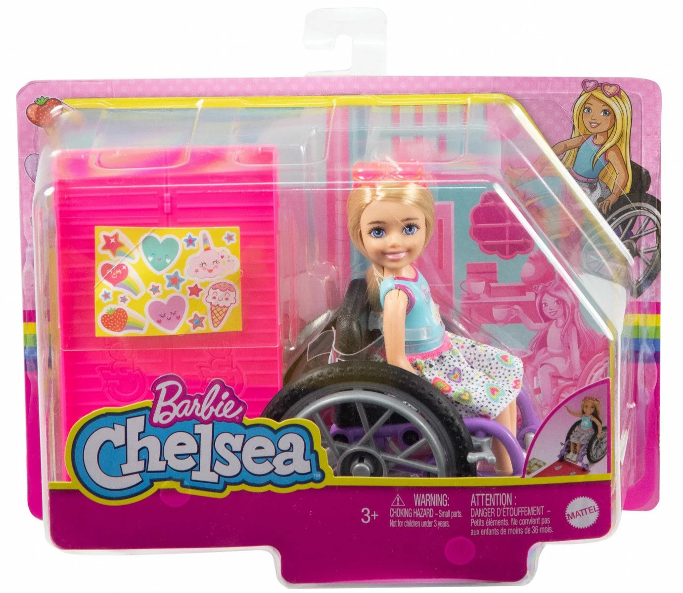 Chelsea dukken i rullestol åpner for mer kreativ lek og nye muligheter. Rullestolen er realistisk med rullende hjul og en rampe inkludert. Klistermerker for å dekorere rullestolen. Chelsea i rullestol er et perfekt tilskudd i gjengen din! Samle flere Chelsea dukker og opplev deres verden.