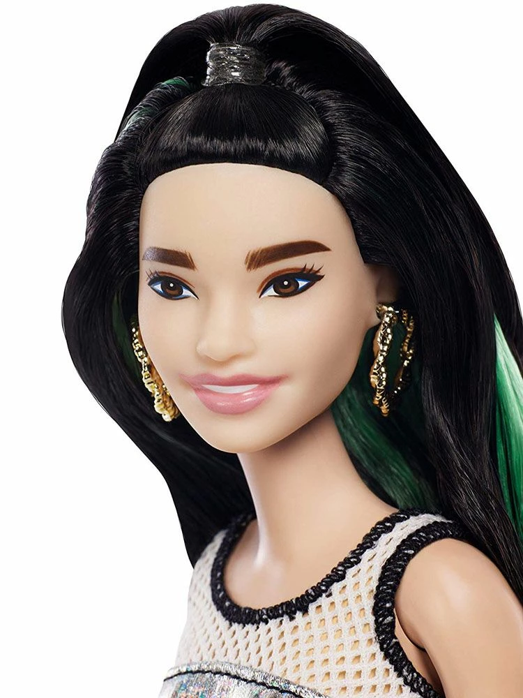 Hver Barbie Fashionistas dukke har sitt eget utseende og stil – fra hverdagslig kul til trendy kjoler. Hver stil er inspirert av de nyeste trendene. Denne dukken er iført en stilig kjole med glitter og netting i halsen. Kombiner gjerne med andre Fashionistas-sett for å lage din helt egen stil (selges separat). Dukken kan ikke stå alene. Størrelse: ca. 29 cm.Anbefalt alder fra 3 år.