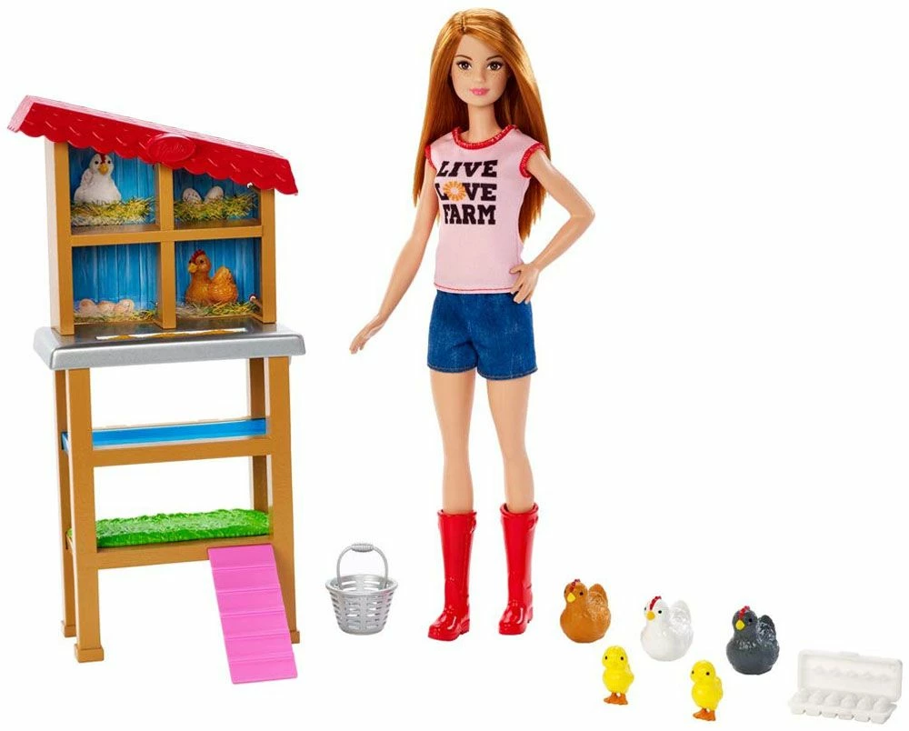Drøm høyt og ta leken videre med Barbie og hennes arbeid. I dette fine settet får du Barbie som kyllingbonde. Barbie elsker hønene sine og tar skikkelig godt vare på dem. Hvor mange egg tror du at de ruger? Bli med Barbie og hjelp henne med å stelle for hønene og hente egg. I settet får med alt av utstyr du trenger for å være med Barbie og drive en kyllinggard. Anbefalt alder: 3+
