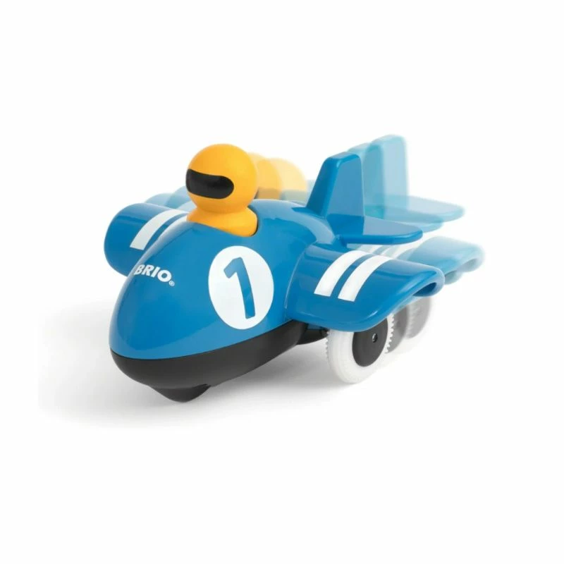 Skyv ned piloten og se dette lille flyet skyte av gårde nedover rullebanen! 30264 Trykk & Kjør flyet er designet for småbarn med en brukervennlig funksjon som hjelper barn å øve på finmotorikken. Laget av slitesterkt tre og plast, hjelper dette leketøysflyet utvikling av barn ved å stimulere aktivitet og bevegelse mens de jager etter flyet i bevegelse.