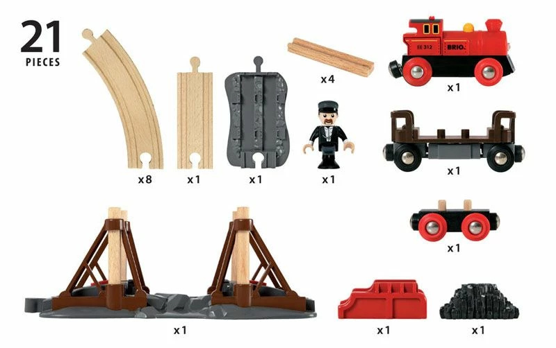Reis tilbake i tiden med dette batteridrevne damptoget og bygg de første togskinnene! Toget venter ved broen mens du bygger ferdig togbanen. Settet inneholder 21 deler. Anbefalt alder fra 3 år.