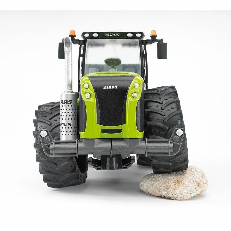 Stilig og realistisk Claas Xerion 5000 traktor fra Bruder i skala 1:16. Taktoren har realistiske detaljer, panseret kan åpnes og førerhuset kan roteres 180 grader og flyttes. Med ekstraratt kan traktoren styres gjennom luken i førerhustaket.