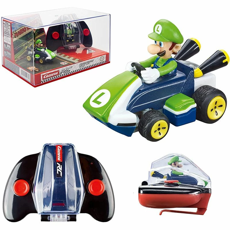 Carrera Marokart Mini RC – Luigi er den perfekte gaven å gi til enhver RC-bilfan eller Mario Kart-lekesamler! Mini RC-bilen i 1:50-skala løper i hastigheter opp til 5 km/t og kommer med en fjernkontroll som har en oversiktlig lagringsdel for å trygt holde RC-bilen når den ikke er i bruk. Mini RC-lekebilen kommer også i en gjennomsiktig boks i plast, noe som gjør dette til en perfekt gjenstand for en Mario-lekesamler å vise frem for alle! Kjør med Luigi nonstop i opptil 7 minutter på én enkelt 30-minutters batterilading med det medfølgende 3,7V oppladbare batteriet. Bruken av 2,4 GHz-teknologi gjør at opptil 16 RC-biler kan kjøres samtidig, noe som gir deg mye konkurranse. Luigi kommer klar til bruk med alle kjøretøy- og kontrollerbatterier inkludert!