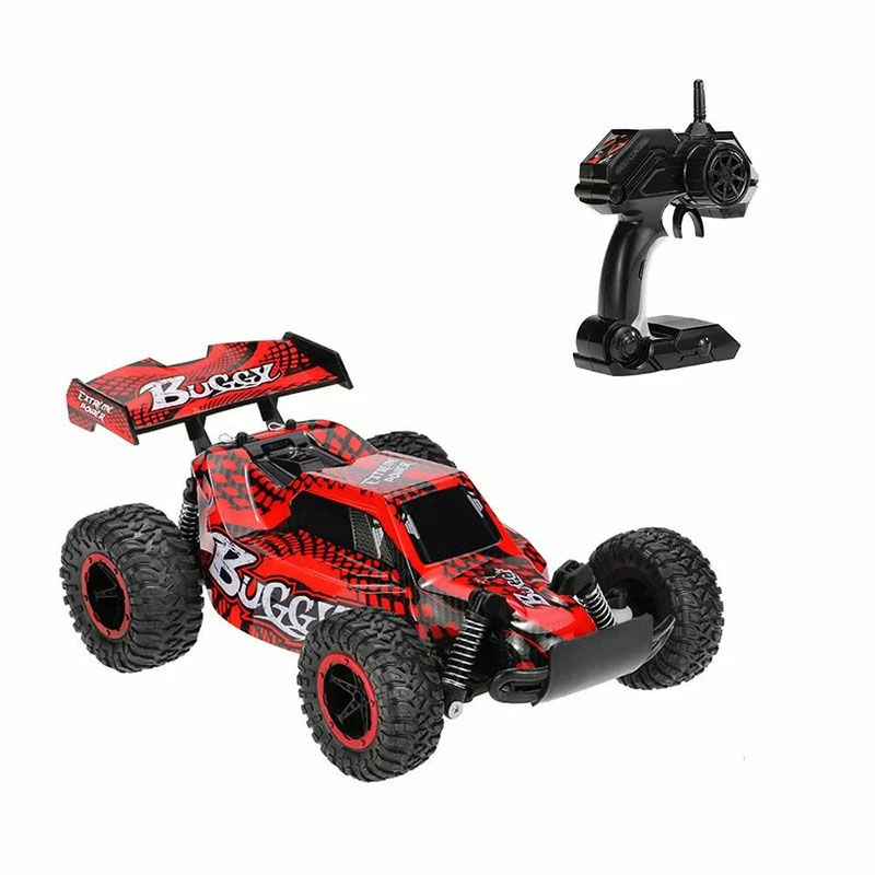 Klar, ferdig, kjør! Denne stilige røde monstertrucken kan kjøre fremover og bakover, og kan svinge mot høyre og venstre. Kontrolleren har en 2.4 GHz frekvens som lar deg bruke flere biler i samme område. Bilen kommer i en skala på 1:16 og måler ca 30 cm i lengden.