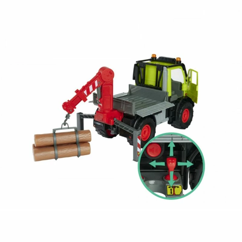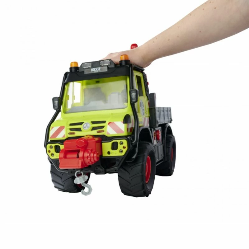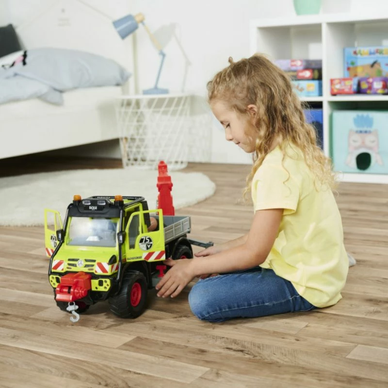 Kjøretøyet er modellert på Mercedes-Benz Unimog U530 og har en svært detaljert design. Kjøretøyet har realistiske lydeffekter og et oransje varsellys for å varsle andre trafikanter. De 3x AA-batteriene som følger med produktet, er for «Prøv meg»-funksjonen. Ytterligere 4x AA-batterier kreves for å drive kranen og svingarmen.
