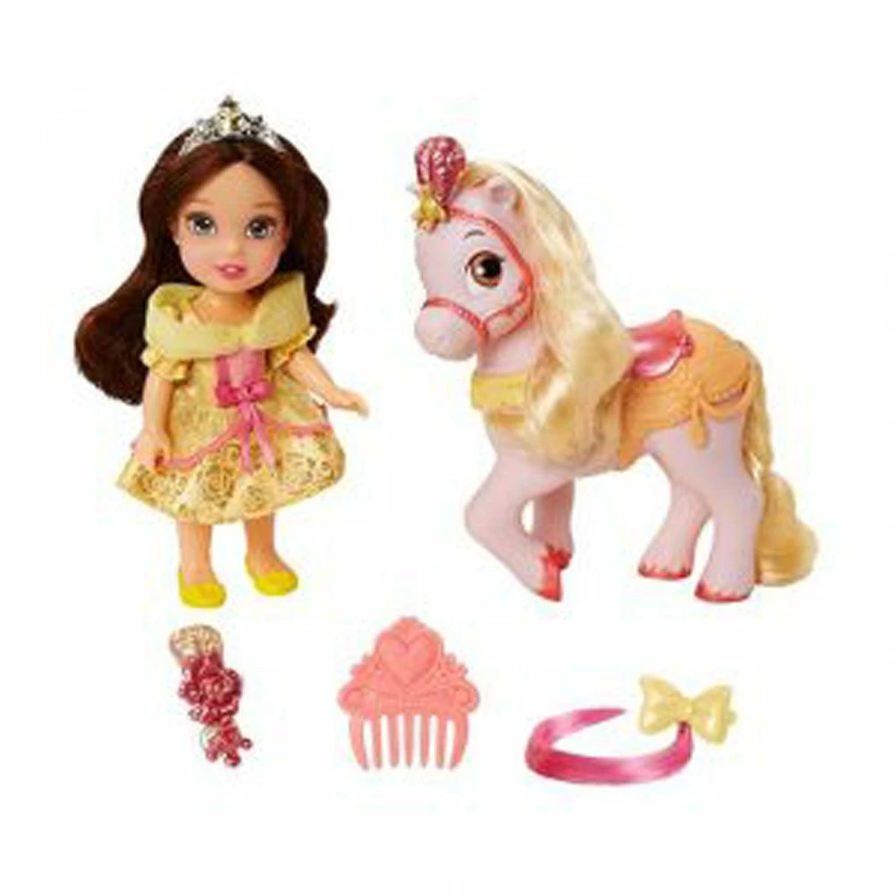 I dette figursettet fra Disney får du med den vakre prinsessen Belle sammen med en søt ponny. Dukken har bevegelige armen og ben og kan settes i forskjellige stillinger. Med i settet kommer det en børste slik at du kan holde både prinsessen og pony fin, samt hår extensions og pynt til manken på hesten. Dukken er 15cm høy. Passer fra 3 år+
