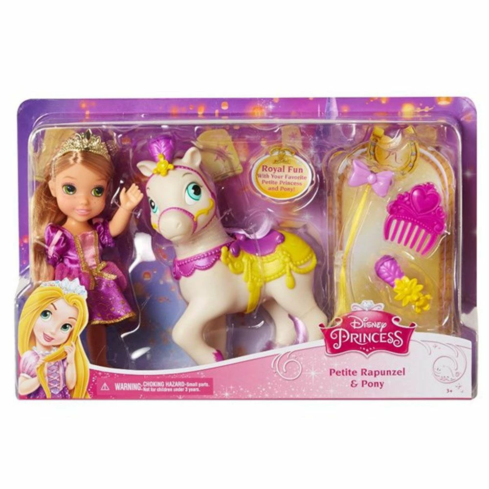 I dette figursettet fra Disney får du med den vakre prinsessen Rapunzel sammen med en søt ponny. Dukken har bevegelige armen og ben og kan settes i forskjellige stillinger. Med i settet kommer det en børste slik at du kan holde både prinsessen og pony fin, samt hår extensions og pynt til manken på hesten. Dukken er 15cm høy. Passer fra 3 år+