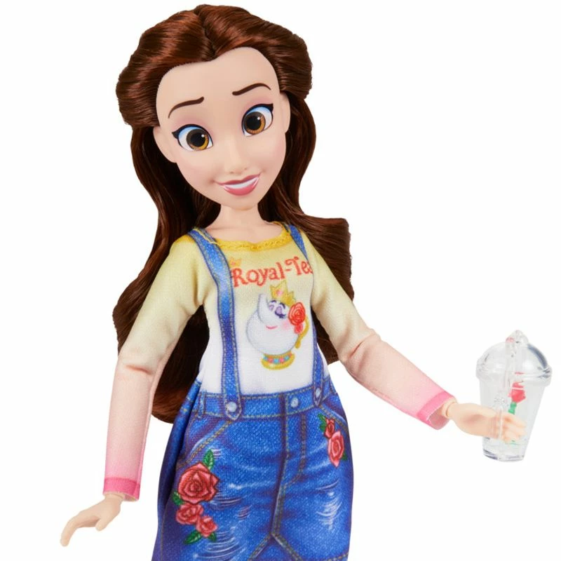 Disney Prinsessen Belle er klar til en avslappet kveld med vennene sine Tiana og Rapunzel(selges separat). Belle har på seg en søt genser i samme stil som den karakteristiske kjolen hennes og et par stilige shorts. Inspirert fra Disney filmen ‘Rive-Rolf Krasjer Internett’.