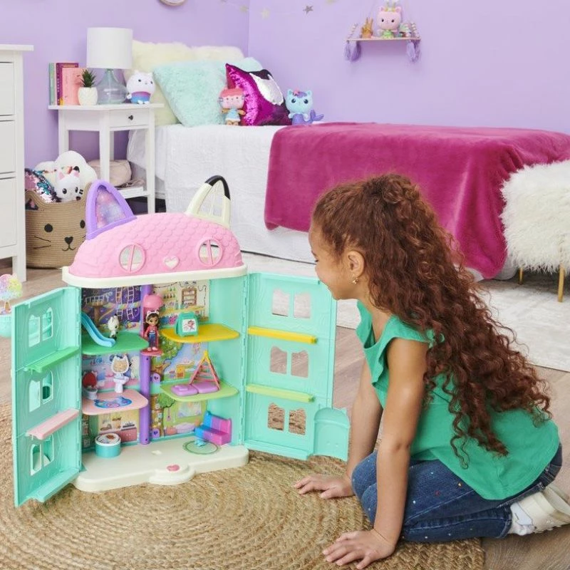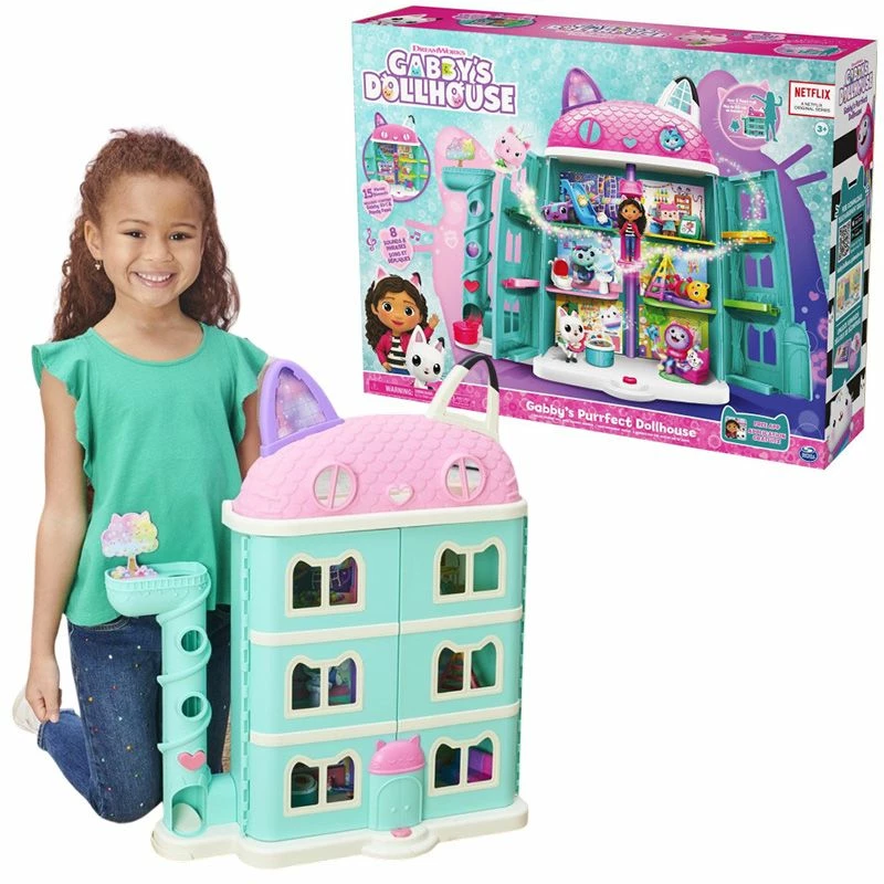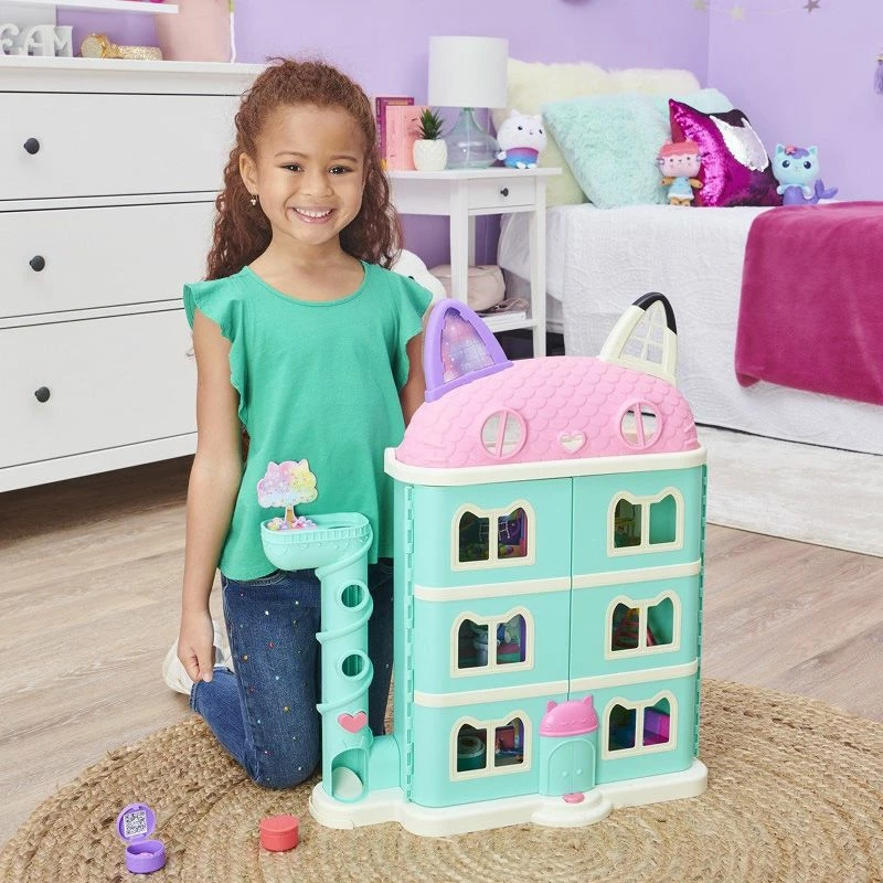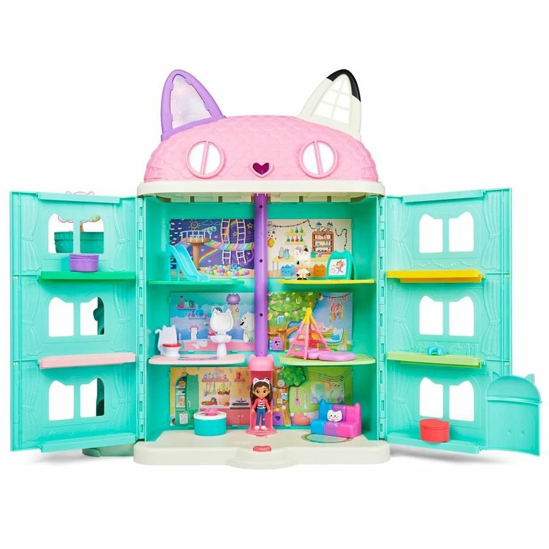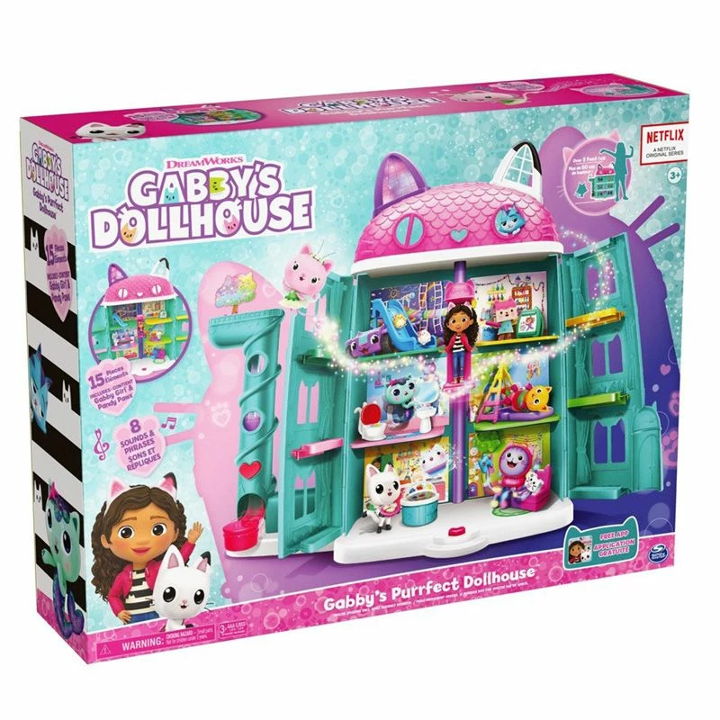 Med DreamWorks Gabbys Purrfect Dollhouse får du et sjarmerende dukkehus fullpakket med spennende funksjoner å oppdage – blant annet et dukkehus-leveringstårn hvor man akkurat som i serien kan slippe pakkeleveringen i tårnet og trykke på knappen for å motta leveringen og pakke ut overraskelsestilbehøret inni. Purrfect Dollhouse er ca 60 cm høyt og har egen stilig heis – en Cat-A-Vator – og når du åpner dukkehuset og trykker på knappen på forsiden kan du høre favorittsangene dine, samt lyder og sitater fra serien. Inkludert i dukkehuset er 2 stk figurer – Gabby og hennes bestevenn Pandy Paws. Det følger også med møbler til hvert rom, ulike tilbehør og 2 stk dukkehusleveringer. Med så mange rom og overraskelser å oppdage, bruk fantasien din til å leke ut din egen dukkehus-verden og endeløse eventyr med Gabby og hennes beste venn, Pandy Paws.