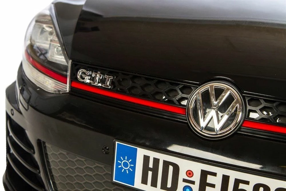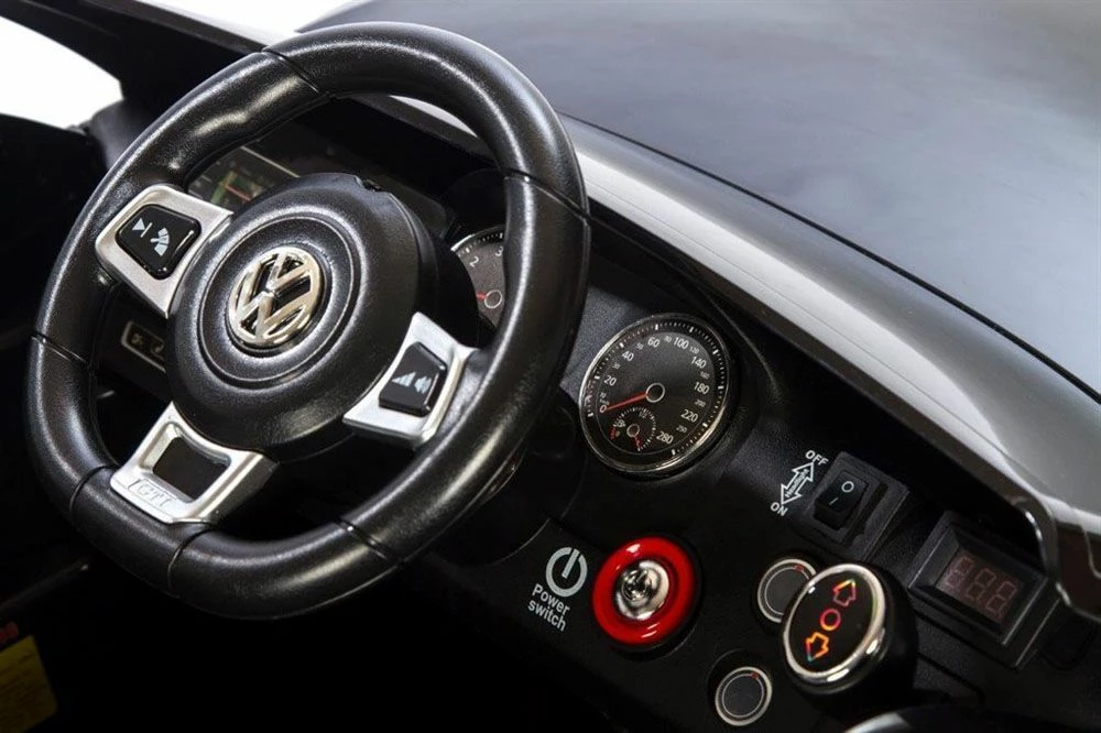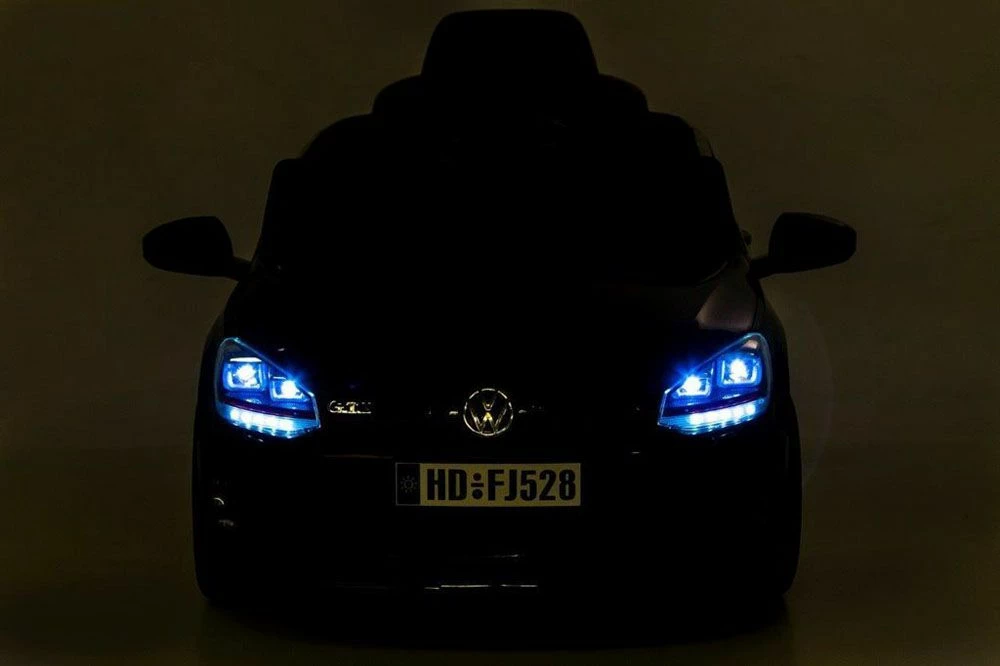 Denne stilige elektriske Golf GTI bilen med flotte detaljer og 12v motor vil være en favoritt hos alle bil-glade barn! Barna kan kjøre rundt i den kule bilen og høre sin favorittmusikk via Micro SSD kort (ikke inkludert). Sikkerheten er på plass med setebelter, frontlykter og stilig LED belysning i hjulene, og bilen har to gir for kjøring og et for rygging. Før barnet selv har lært å kjøre bilen kan foreldre enkelt fjernstyre med kontrollen og etterhvert bytte over til at barnet selv styrer.
