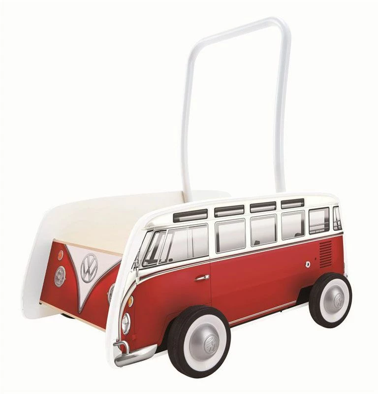 La barnet cruise rundt med dennne fantastisk kule gåvognen fra Hape formet som en klassisk Volkswagen Folkevognsbuss. Folkevognsbussen er laget i tre, har justerbart håndtak og gummihjul. En solig og god gåvogn.