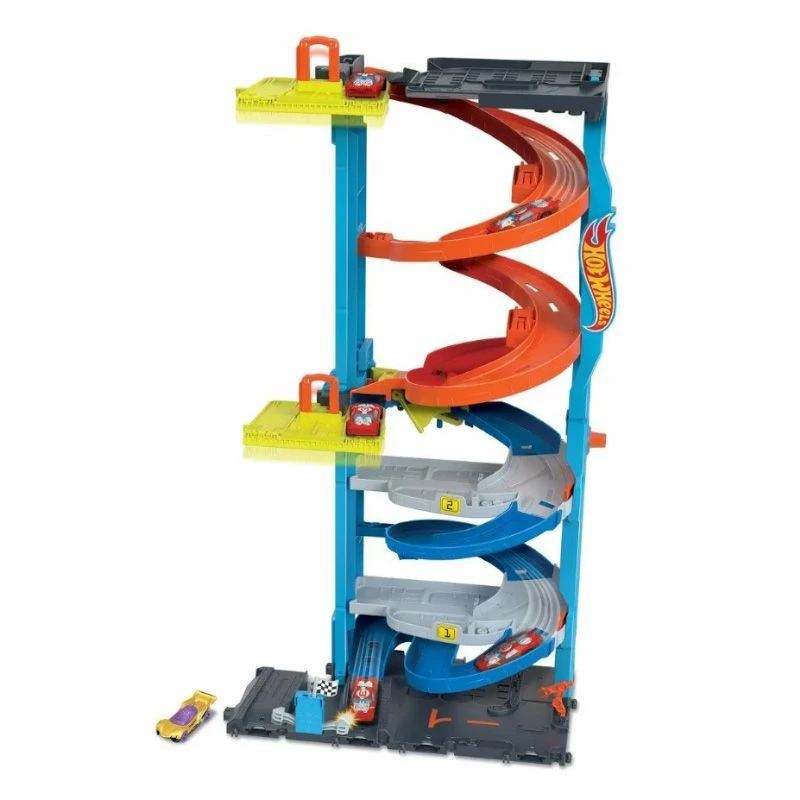 Opplev spennende 2-i-1-racing med Hot Wheels City Transforming Race Tower. Dette nyskapende lekesettet kan gjøres om fra å ha to konkurransebaner side om side med rettferdige startporter, til å være en enkel bane som er hele 66 cm høy. Banedetaljene på basen oppmuntrer barna til å lage sine egne historier, og det følger med 1 Hot Wheels-bil som gjør settet til en perfekt gave til barn fra 4 år og oppover. Kan kobles sammen med andre sett for å skape enda mer action og spenning. Flere sett selges separat.