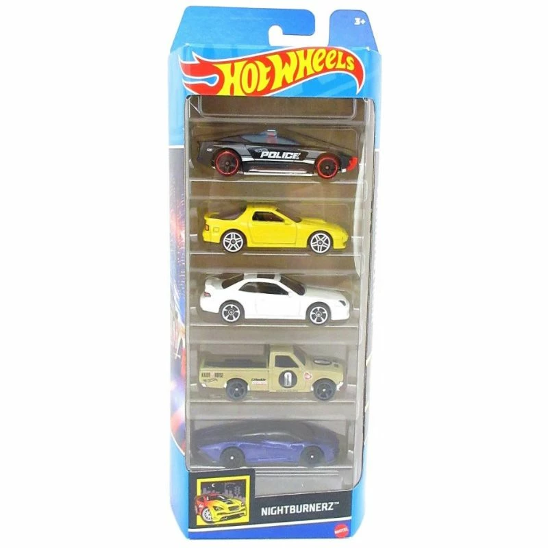 Få en hel Hot Wheels-samling på et øyeblikk med denne konkurranseklare pakken med fem svært detaljerte biler. Hot Wheels-pakken med fem biler gir fem ganger så mye spenning og er perfekt for bilentusiaster i alle aldre. Med et tøft, enhetlig tema, autentiske detaljer og iøynefallende dekor er disse pakkene en perfekt gave til både barn og samlere.