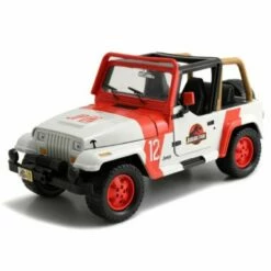 Livet finner en vei, og denne Jeep Wrangler Jurassic Park fra 1992 bør finne en vei inn i samlingen din. Denne ikoniske Jeep Wrangleren inkluderer stylingelementer rett fra filmserien. Kjøretøyet har høykvalitets lakk og dekorative detaljer, fungerende hjul, høykvalitets gummidekk, panser for å åpne, dører og bagasjerom.
