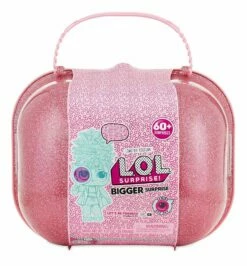 L.O.L. Surprise! Bigger Surprise er fylt med enda flere overraskelser og eksklusivt innhold til samlingen som aldri er sett før. Kofferten inneholder over 60 overraskelser! Når en åpner den har den 4 lag innvendig. 1.lag inneholder 10 bokser hvor en finner forskjellige antrekk og tilbehør. Lag 2 har 6 kapsler som lar L.O.L dukkene dine få noen skikkelig kule sveiser. 3. lag består av 2 L.O.L. surprise baller, samt en Lil’ sister ball og en L.o.L Pets ball. Det 4.og siste laget har 6 blindbags med flotte overraskelser. Passer fra 6 år+