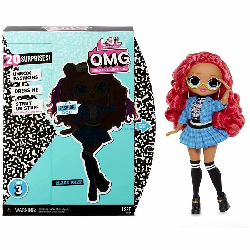 Møt den flotte og trendy Class Prez, storesøsteren til den populære LOL Surprise karakteren Teacher’s Pet! De nye LOL surprise fashion dukkene kommer med hele 20 overraskelser. Fashion dukkene er vakre, har flott hår og har sin egen fabelaktige stil. Med hver dukke er det en helt unik måte å pakke ut overraskelsene på. Fortsett å pakke ut esken og finn flere overraskelser underveis. De 20 overraskelsene inkluderer et stilig antrekk, sko, tilbehør samt mye mer. Esken blir til et stilig skap som kan brukes til oppbevaring av tilbehøret.