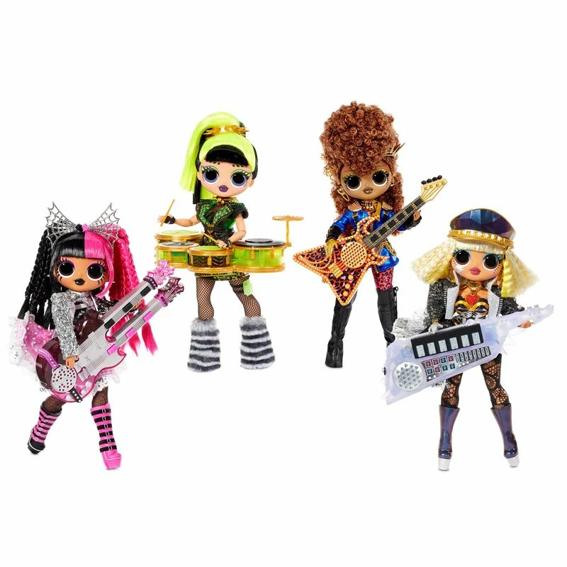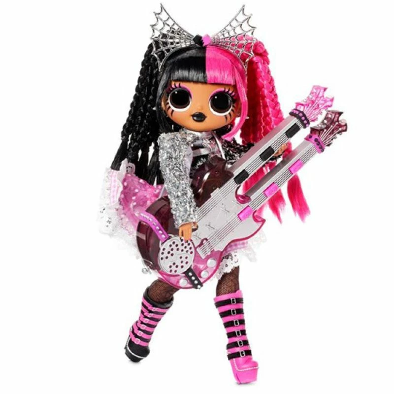Pakk opp L.O.L. Surprise OMG Remix Rock motedukken Metal Chick – med 15 overraskelser inkludert en elektrisk gitar! Metal Chick er medlem av Super Sonix, rockestjernebandet bak hitten «I’m a Queen.» Hun har fantastiske funksjoner, vakkert, stylet hår og sin egen skandaløse rockestjernestil. Hun er storesøsteren til L.O.L. Surprise -karakteren Metal Babe, og hun er klar for den ultimate konserten.