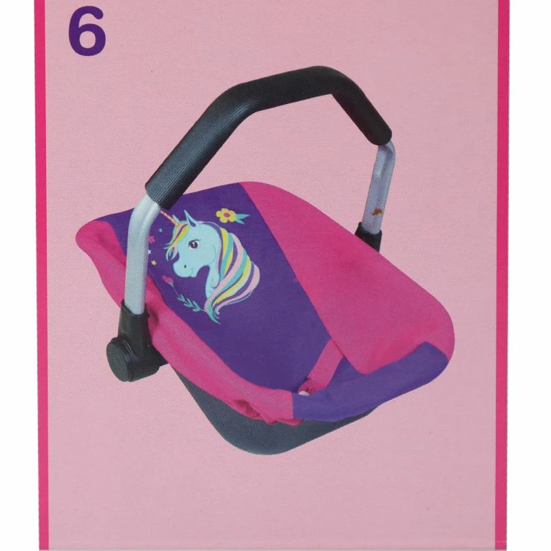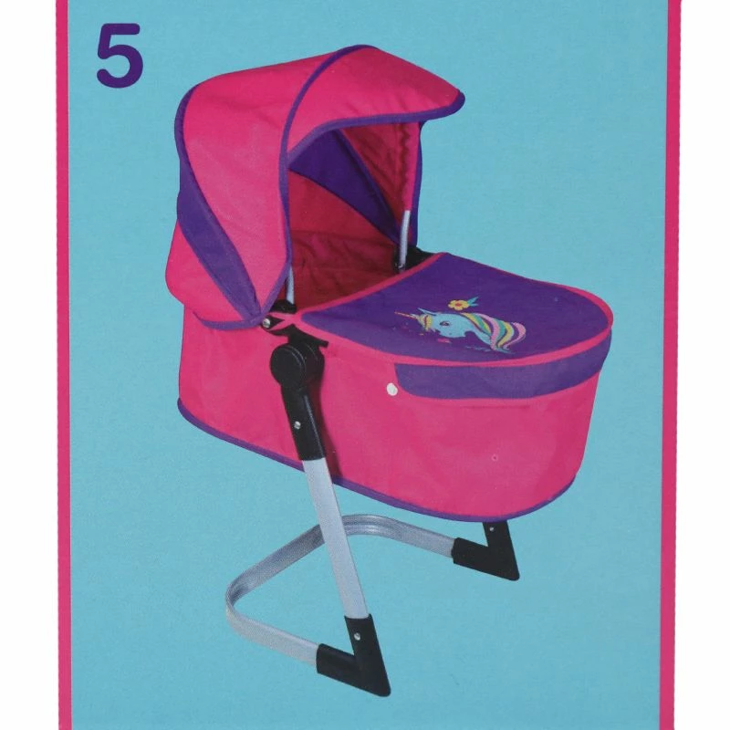 Ta med deg dukken din på tur med denne flotte Lissi dukkevognen. I dette lekesettet kommer vognen og bærestolen med tilsammen 6 funksjoner som kan brukes til den lille dukken din. Gjør dukkevognen om til en trillevogn med bruk av bærestolen, Du kan også sette vognen på stativet uten hjul for å lage en liten seng til din lille dukke, eller sette bærestolen på stativet for å få en stol. Vognen kommer med en liten kurv på undersiden for oppbevaring av for eksempel varer eller utstyr til dukken din. Ikke glem den flotte stellevesken hvor du kan legge bleier til dukken, eller flaske og smokk.