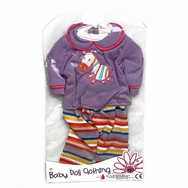 Kle babydukken din opp i dette flotte antrekket med en lilla genser med motiv av en søt og fargerik hest, og stripete fargerike bukser. Det følger med en kleshenger slik at du kan henge opp antrekket når det ikke er i bruk.