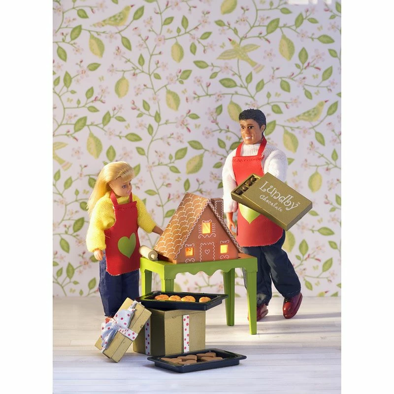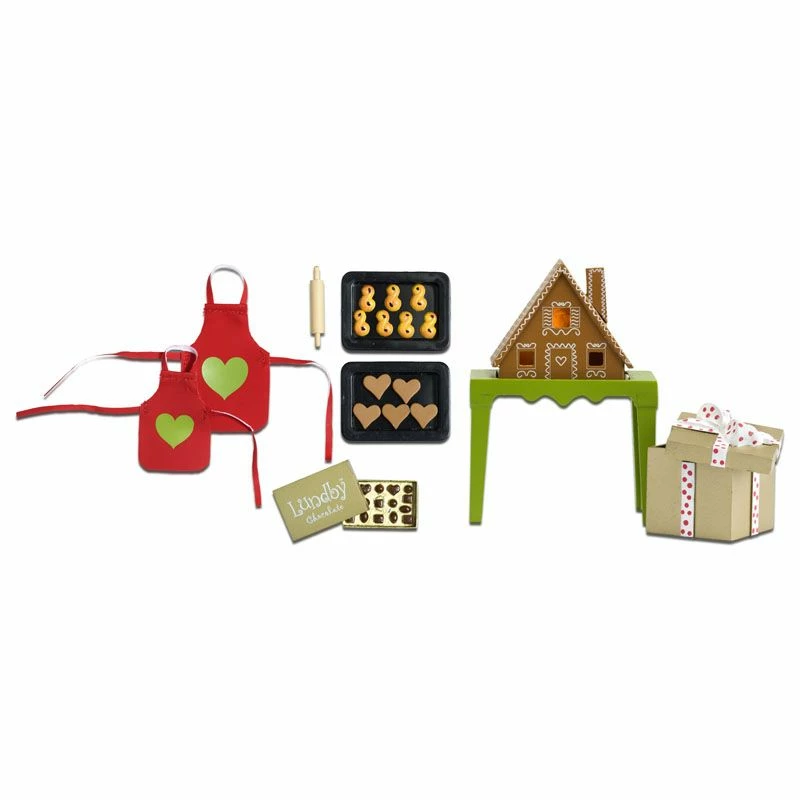 Med dette koselige pepperkake settet kan det bli koselig julestemning i Lundby huset. Settet inneholder brett med kaker, forkle, pepperkakehus og annet tilbehør.
