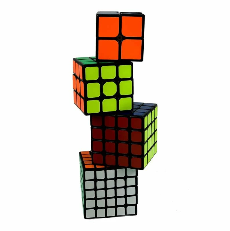 Lær å få alle fargene på en side eller lag mønster med denne flotte pakken med kuber. Settet inneholder 4 kuber i forskjellige størrelser og en bruksanvisning som lærer deg tips og triks til hvordan du skal imponere vennene dine. Settet inneholder kuber på 2×2, 3×3, 4×4 og 5×5.