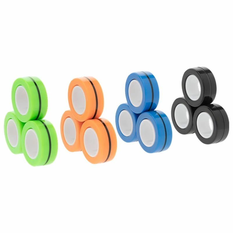 Utfør stilige triks med de tøffe magnet ringene! Ringene kan tas fra hverandre eller festes sammen og spinnes rundt på fingrene. Du kan til og med kombinere enda flere magni rings og feste alle sammen. Ringene kan også brukes til å spille hockey, hvor du plasserer 2 ringer som et mål og prøver å sende den siste ringen gjennom uten at de fester seg.