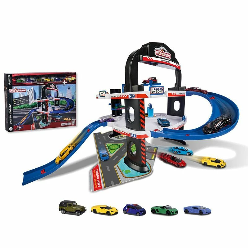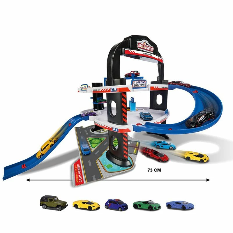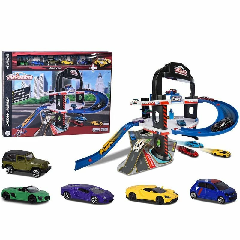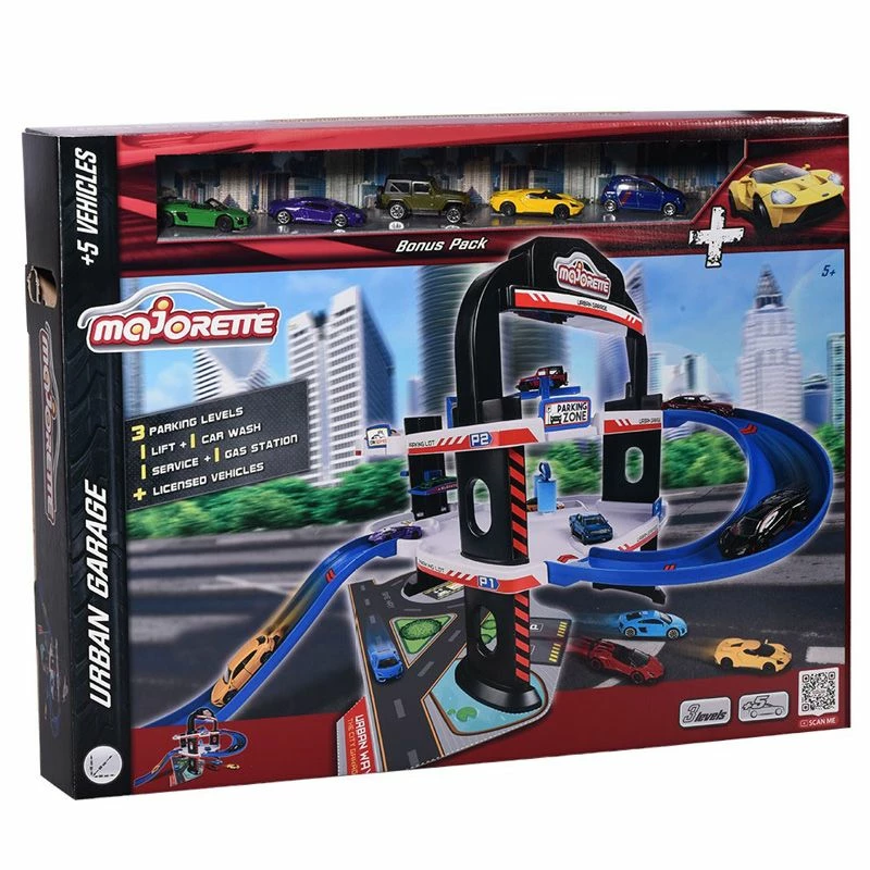 Urban Garasje er en klassisk parkeringsplass fra Majorette med tre etasjer! Med bilvask, bensinstasjon, inspeksjonsplattform og manuell bilheis inviterer den deg til å bruke kreativ og fantasi for å skape actionfylte historier. Det følger med 5 stilige Majorette kjøretøy i forskjellige farger.
