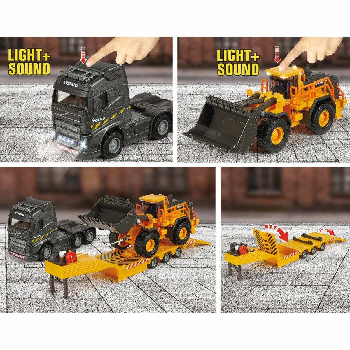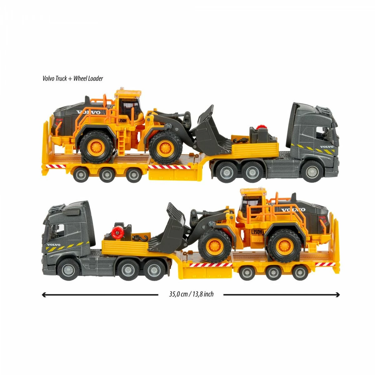 Majorette Volvo FH-16 lastebil: Det perfekte kjøretøyet for å transportere en hjullaster! Ingen byggeplass er komplett uten denne lastebilen. Volvo-lastebilen kan transportere hjullasteren til neste oppdrag. I tillegg til det detaljerte designet, kommer denne Majorette lastebilen også med mange morsomme funksjoner som garantert vil underholde barn lenge, inkludert henger med vinsj med tau og krok, slik at du kan sikre hjullasteren på plass under transport. Hjullasteskuffa kan beveges opp og ned eller vippes for hånd, men moroa slutter ikke der – hjullasteren har også to forskjellige lydeffekter, samt to frontlykter og to baklykter. Taket på kjøretøyet har et oransje varsellys, for å varsle trafikk i nærheten. Oppdag alle store modeller i vår nye og større skala 1:43. Velg mellom nødetater, anlegg eller bykjøretøy. Oppgrader bilsamlingen din med Majorette Grand Series! Dimensjoner: (LxBxH) 35,0 x 6,5 x 11,0 cm. Batterier inkludert (4xAAA). Passer barn fra 3 år.