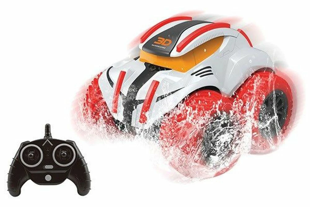 Denne råstilige radiostyrte bilen bryr seg ikke om været. Den kan kjøres i all type vær og er vanntett. Den kan til og med kjøre over vann! Bilen måler ca: 15cm i lengde og 15cm i bredde. Bilen krever 4x AA og 1x 9V batterier (ikke inkludert). Anbefalt alder: 6+