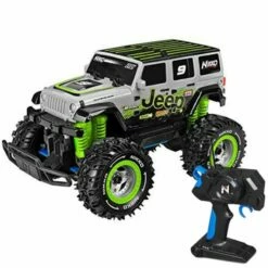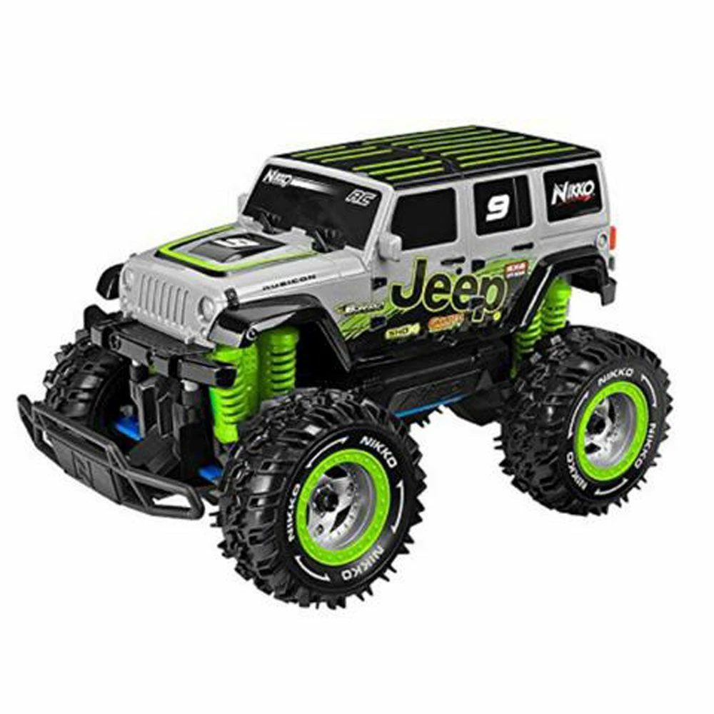 Med den tøffe Nikko Jeep Wrangler radiostyrte monstertrucken er du klar for nesten alt! Den er bygget for offroad kjøring og takler det meste av røft terreng. Skala er 1:16 som vil si at den er ca. 30 cm lang og ca, 17 cm bred. Fjernkontrollen har en rekkevidde på opptil 40 meter. 2,4 GHz frekvens gjør det mulig at hele 10 personer kan kjøre samtidig, uten forstyrrelser fra andre radiostyrte biler.