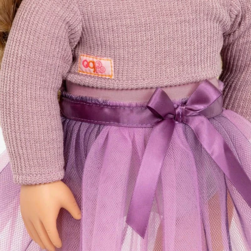 Snurr og skinn med Savannah, Our Generation 46 cm ballerina-dukken med langt, bølget blondt hår og mørkeblå øyne som åpnes og lukkes! Savannah kan rotere nakken, armene og beina for å utføre piruetter og andre morsomme ballettstillinger mens hun danser på scenen. Ta på Savannah’s rosa skuldertrekk mens hun trener på rutinen sin, og sett opp et magisk show med hennes fantastiske ballettkjole! Savannah har en rosa leotardkjole med lyslilla tyllskjørt og dekorativt bånd i livet. Og det matchende hodebåndet gir frisyren et ekstra snev av søthet. Savannah’s antrekk er lett å åpne og lukke, slik at du raskt kan ta av og på, slik at hun kan feire med vennene sine i andre fargerike antrekk etter at hun mottar applaus!
