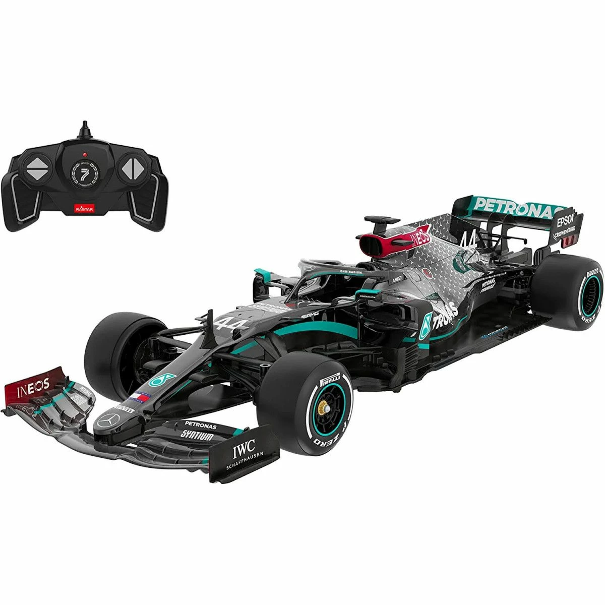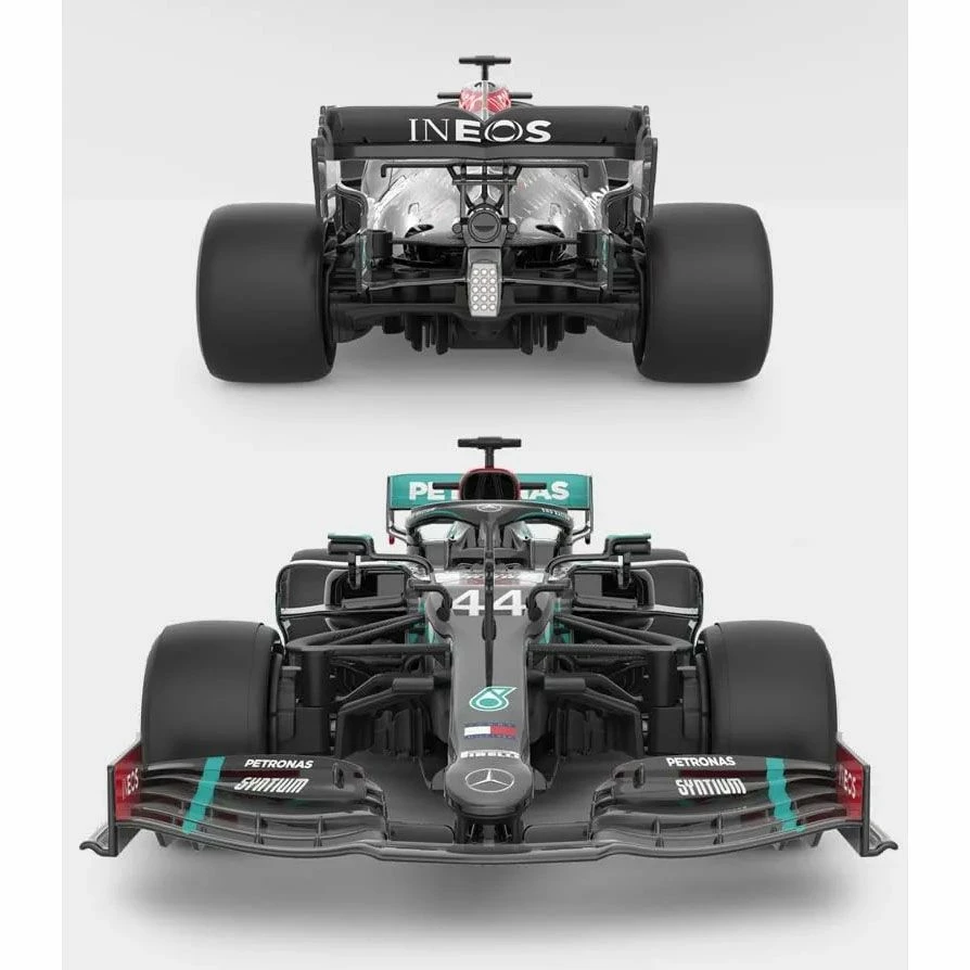 Tøff fullfunksjons radiostryrt Mercedes AMG Formel 1 bil. Bilen er skala 1:18 og måler ca 32cm * 12cm * 6cm. Krever 5xAA batterier (ikke inkludert). Fra 6 år.