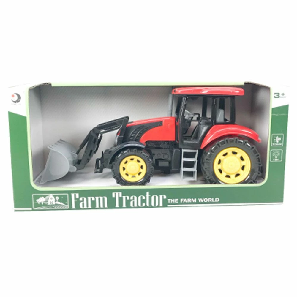 Flott rød traktor med skuff. Traktoren måler 30cm i lengde og 11cm i bredde. Anbefalt alder: 3+