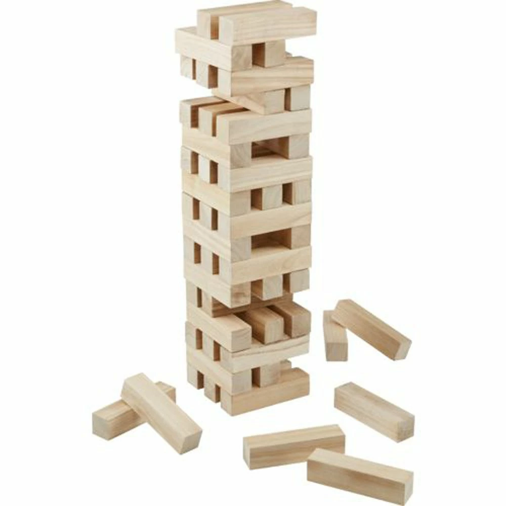 Bygg tårnet med 3 og 3 pinner av gangen. Hver person fjerner en pinne til tårnet faller.