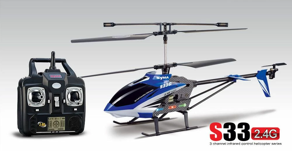 Stort og stilig blått helikopter fra kvalitetsmerket Syma med 3 kanaler, enkel styring og 50 meters rekkevidde. S33 er et 3-kanals helikopter som betyr at det kan fly i 6 retninger; opp og ned, fremover og bakover og rotere med og mot klokken. Er du kjent med S-flåten med helikoptere fra Syma vet du nøyaktig hvor stabilt det er! Den kraftige gyroen sikrer en stabil flytur og hindrer kontinuerlig rotasjon. Radiosystemet benytter 2,4 GHz frekvens som betyr at du kan styre helikopteret uten å være bekjymret for forstyrrelser for signalet, som glass, speil eller sollys. Frekvensen tillater også at flere kan fly samtidig. Helikopteret måler hele 77,5 cm og passer til utendørslek for fartsglade gutter og jenter.
