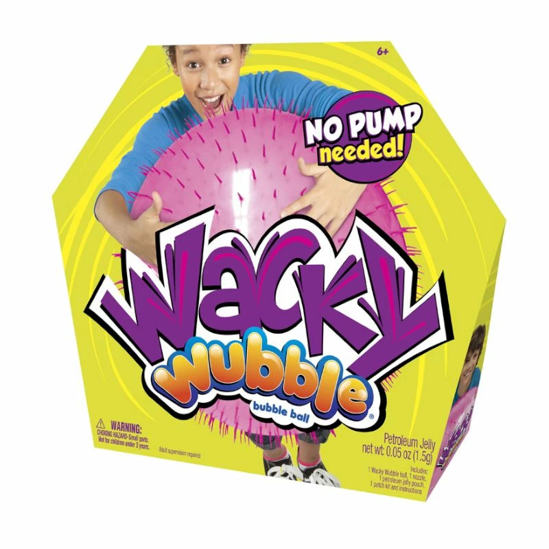 Den ser ut som en boble og spilles som en ball – og så har den kriblende pigger! Wacky Wubble er Wubble superbobleball med de sprø piggene som vrikker og nikker og beveger seg når du leker med den – og skaper en illusjon om at den er i live.